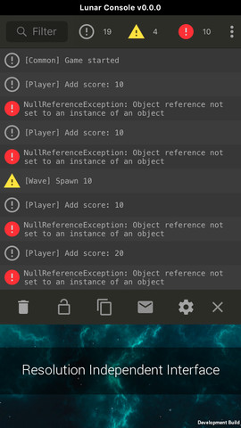 Неплохой ассет мобильной консоли для дебага непосредственно на устройстве. Есть поиск, фильтры, копирование в буфер и отправка на почту, исходный код открыт.